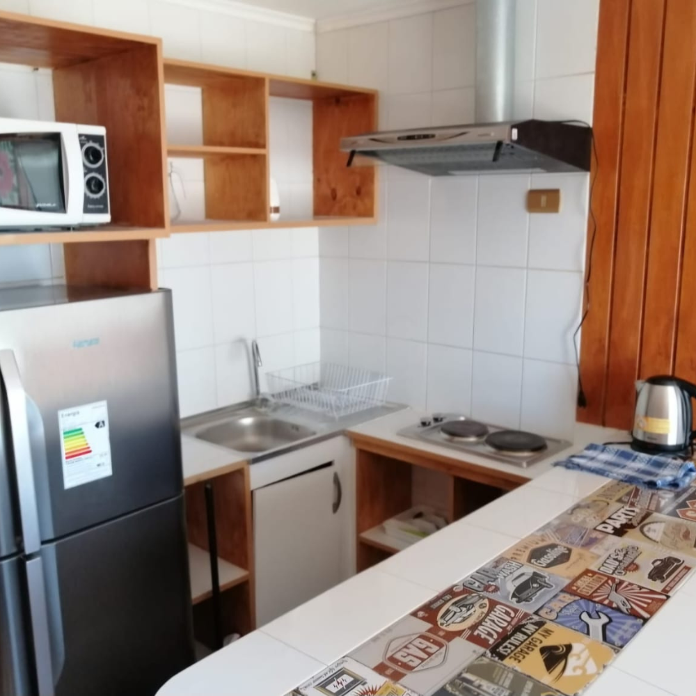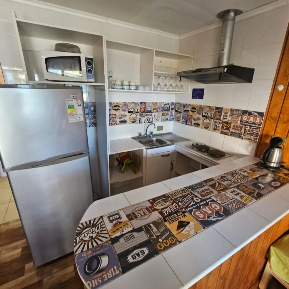Si buscas un refugio privado para dos en El Tabo, nuestra cuarta unidad ofrece el ambiente perfecto para desconectarse de la rutina. Este espacio compacto y acogedor ha sido diseñado pensando en la comodidad absoluta de las parejas, brindando un entorno cálido donde cada detalle, desde la cocina equipada hasta el rincón del quincho, invita a disfrutar de momentos inolvidables cerca del mar